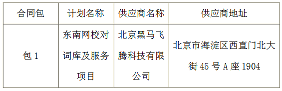 福建東南網(wǎng)傳媒股份有限公司采用單一來(lái)源采購(gòu)方式組織采購(gòu)校對(duì)詞庫(kù)及服務(wù)項(xiàng)目(以下簡(jiǎn)稱(chēng):“本項(xiàng)目或者采購(gòu)項(xiàng)目”)的采購(gòu)活動(dòng),特邀請(qǐng)下列供應(yīng)商參加本項(xiàng)目特定合同包的協(xié)商。現(xiàn)將本項(xiàng)目有關(guān)事項(xiàng)告知如下: