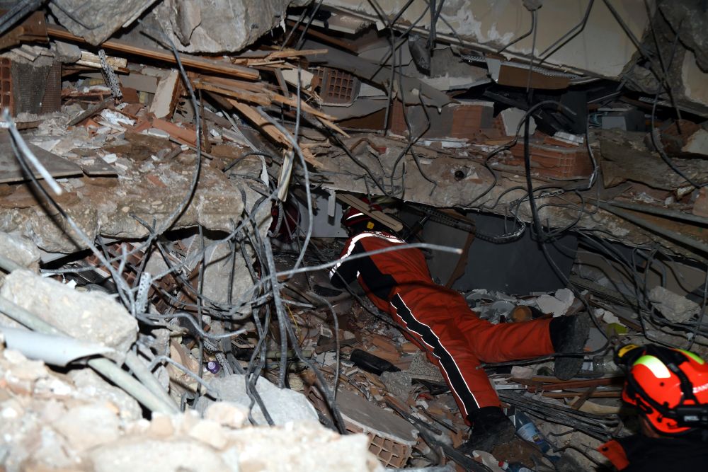 2月8日,中國救援隊隊員在土耳其哈塔伊的一處地震廢墟搜救。新華社記者沙達提攝