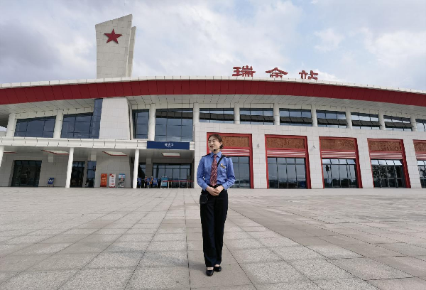 圖片來源:中國鐵路南昌局集團有限公司 瑞金車站售票員王瑜,利用休息時間在車站當起兼職紅色講解員。“大家首先看到的便是瑞金火車站站前廣場主題雕塑,雕塑參考當年蘇維埃共和國黨、政、軍、群領導人當年留影照片,從東至西依次是劉少奇、項英、周恩來、毛澤東、朱德、張聞天、博古……”每當有團體旅客來到車站,希望了解浮雕故事時,王瑜都會在引導他們進站乘車的同時娓娓道來,一個個黨史故事。