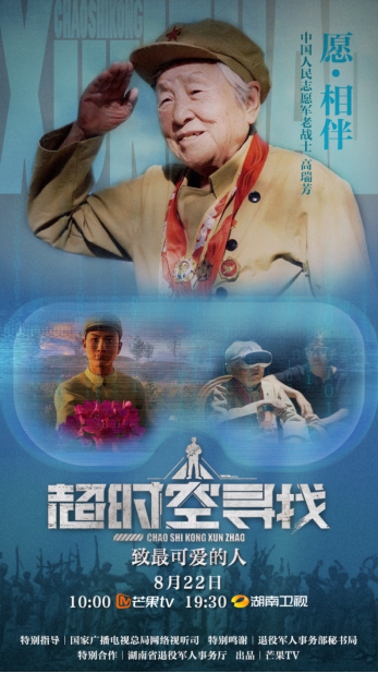 東南網8月22日訊(本網記者 吳開興)在國家廣播電視總局網絡視聽司指導下,芒果TV出品了紀念抗美援朝戰爭勝利70周年紀錄片《超時空尋找》,今日10:00芒果TV、19:30湖南衛視播出第三集《愿·相伴》,講述的是中國人民志愿軍老戰士高瑞芳與丈夫孫成英一同奔赴朝鮮戰場保家衛國。
