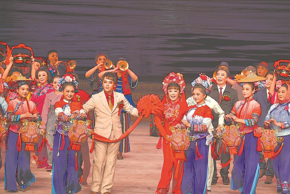 演員們的演繹飽含深情。 泉州市高甲戲傳承中心供圖 2023年12月29日,北京國家大劇院,2024年新年戲曲晚會在此精彩上演。黨和國家領導人同首都各界群眾歡聚一堂,一起觀看演出,喜迎新年的到來。 作為我省唯一入選節目,現代高甲戲《圍頭新娘》晉京獻演。這部由泉州市高甲戲傳承中心創排、源自真實兩岸故事、演繹兩岸同胞數十年“雙向奔赴”的現代劇目,在首都舞臺上一亮相,就引得滿堂彩。 呈現兩岸融合發展畫卷 “參加如此高規格、高層次的演出,在高甲戲劇種發展史上尚屬首次。對于《圍頭新娘》這個劇目來說,是一次難得的打磨提升的機會。”1日,從北京率隊歸來的泉州市高甲戲傳承中心主任周杰俊說,這是泉州高甲戲第一次亮相新年戲曲晚會舞臺。 今年的新年戲曲晚會名家薈萃,15個參演作品中,傳統劇目和新創佳作交相輝映,展現新時代戲曲藝術傳承發展的繁榮氣象,唱響逐夢新征程的時代凱歌。為了凸顯地方劇種特色,泉州高甲戲傳承中心精心挑選了《圍頭新娘》中“海上婚禮”選段。 “這是一場非常有代表性的選段,戲劇情節豐富動人、舞臺氛圍熱鬧溫馨,融合了閩臺兩岸文化風貌、民俗風情,不僅劇種特色鮮明,鄉土氣息濃郁,還以完美的舞臺呈現,展示了兩岸融合發展的美麗畫卷。”周杰俊說。 為了拿出最佳效果,80多人的演出團隊提前半個月就進京籌備彩排。“很多體現泉州特色的道具,像彩扎花燈、漆籃、簪花圍、惠女服飾等,我們都是從泉州帶去的。”周杰俊說,在排演過程中,晚會總導演郭小男為了更好地呈現地方特色,還特地調整了舞臺吊景,展示泉州紙扎花燈。《圍頭新娘》也成為整場晚會中唯一啟用舞美吊景的劇目。 一同參演2024年新年戲曲晚會的京劇表演藝術家孟廣祿說,高甲戲有300多年歷史,給廣大觀眾扎下了藝術的根芽。他聽說高甲戲今年要來北京演出,特別預祝劇團在京演出成功。川劇表演藝術家沈鐵梅評價高甲戲“非常有特色”,也期待下一次看到全本的《圍頭新娘》。 《圍頭新娘》的演出之所以反響熱烈、好評如潮。在周杰俊看來,一是因為兩岸題材的故事“接地氣”——劇中的人物、橋段都有原型,編劇、導演等主創力求在真實的基礎上進行藝術創作,使劇情十分打動人;二是因為高甲戲是閩南語方言區最主要的戲曲劇種之一,首批入列國家級非物質文化遺產,劇目呈現的閩南語、鄉土氣息、風俗人情以及表演程式、唱腔曲牌,都為兩岸民眾所喜聞樂見。兩岸一脈相承的文緣,在劇里得到淋漓盡致的展現。 此外,高甲戲在全國348個地方劇種中特色顯著,因而,當現代題材用閩臺兩地最具共鳴的藝術形式在全國舞臺上展現時,就成為突破地域的文化符號,得到廣泛而深沉的情感共鳴。 大小舞臺上打磨三年多 《圍頭新娘》講述了與金門隔海相望的泉州圍頭村從“炮戰第一村”發展成“兩岸通婚第一村”的故事。該劇以實現兩岸通郵、通商、通航,再到通婚、通水為背景,描述激蕩在圍頭的兩岸婚戀熱流,兩岸人民從“冤家變親家”攜手共建家園的傳奇。 在進京演出前,《圍頭新娘》已經創排、打磨了三年多時間。該劇曾入選2021年度國家藝術基金資助項目、福建省舞臺藝術精品工程重點劇目。 不過,在此之前,劇團已經多年沒有創排過現代戲了。因而,從立項之初,省市各相關部門都非常重視,請來了全國和省里的導演、編劇等名家擔任主創團隊,遵循“守正創新”藝術創作原則,泉州市高甲戲傳承中心也是舉全團之力來打造這部戲。 從2021年11月泉州市第34屆戲劇會演首演至今,《圍頭新娘》已演出80多場。“我們既在全國地方戲劇展演、泉州市戲劇會演等大舞臺上演出,也在村鎮街道和沒有布景的舞臺上演過,都是為了磨戲。”周杰俊說,泉州是“閩南戲窩子”,大家都鉚著一股勁,一定努力把這部戲打造成一個能夠代表泉州、反映時代的精品劇目。 文化使者促進兩岸交流 構思之初,《圍頭新娘》就立足于傳遞海峽兩岸血濃于水的親情,主創團隊多次到圍頭村采風。“整部戲以送炮彈、送婚姻、送水為線索,這也是兩岸同胞往來越來越頻繁的寫照。”周杰俊說。 作為兩岸文化交流的重要“使者”,泉州市高甲戲傳承中心參與過很多兩岸交流的“重要時刻”:2000年,劇團與金門高甲戲赴福建觀摩團舉辦高甲戲藝術表演座談和表演觀摩交流;次年,應金門城隍廟管委會邀請,劇團一行62人由廈門和平碼頭直航金門演出,成為大陸首次直航金門的文藝表演團體;2006年,該團又直航澎湖參加“泉州文化周”;2008年,劇團隨泉州天后宮到臺灣進行了為期兩個多月的巡演…… “臺灣的觀眾和戲迷就像家人一樣,他們會專車跟著劇團輾轉多地追戲,那真是發自骨子里的喜歡。”周杰俊說,甚至還有臺灣戲迷讓自己的孩子認主演為“干爹”“干媽”,后來成了常來常往的“親家”。 《圍頭新娘》進京展演的消息,讓身在圍頭村的“故事原型”心潮澎湃。圍頭村現有148對“兩岸婚姻”,包括138位“圍頭新娘”和10位“臺灣新娘”,被譽為“兩岸通婚第一村”。在這里,兩岸一家親的故事每天都在發生,成為兩岸融合發展的生動案例。 “圍頭新娘的故事登上國家大劇院舞臺,也是我們的驕傲。現實生活中的‘圍頭新娘’,早已成為兩岸民間交流的紐帶。”圍頭村黨委書記、村委會主任洪水平說。 近年來,泉州做好“通、惠、情”三篇文