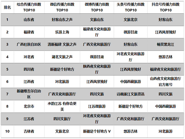 近日,文旅產業指數實驗室發布2022年度全國省級文旅新媒體傳播力指數報告,2022年度綜合傳播力指數前十的有:山東省、福建省、廣西壯族自治區、河北省、四川省、江西省、新疆維吾爾自治區、北京市、江蘇省、吉林省。其中,福建省位居第二位。