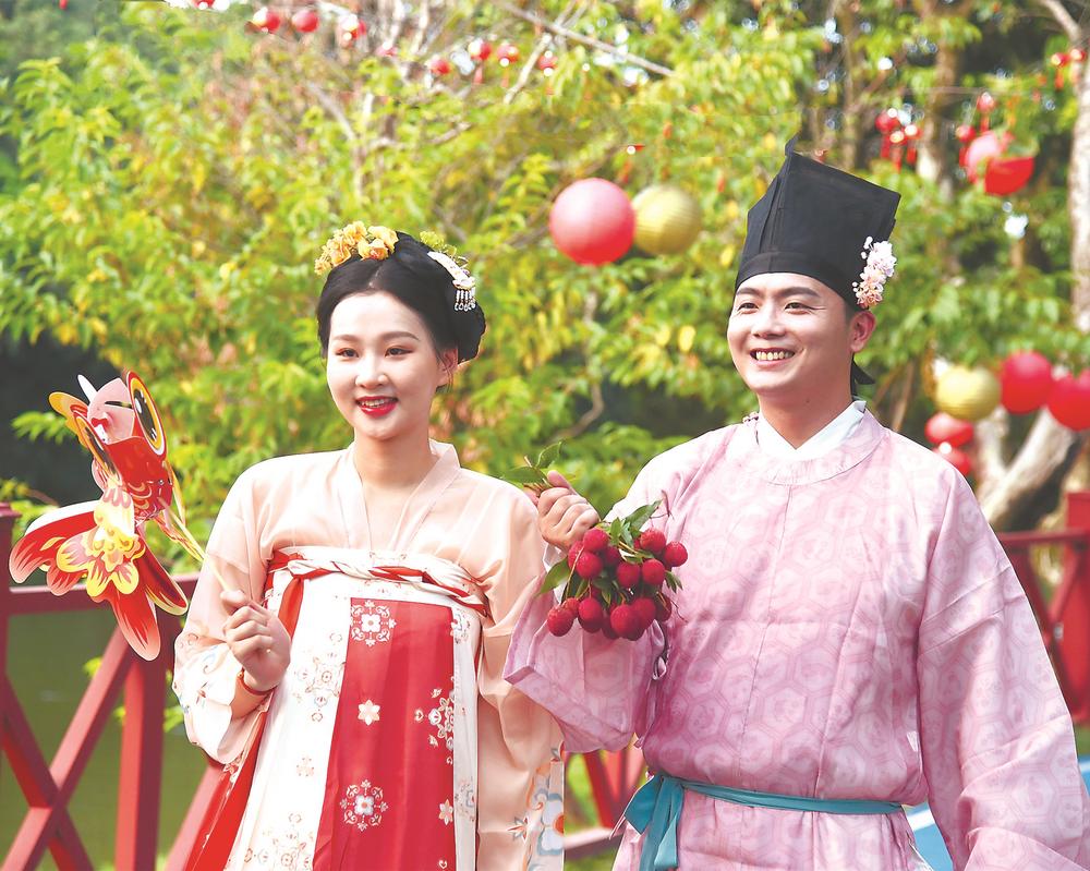 作為“莆陽(yáng)爽夏”系列活動(dòng)之一,14日,莆田市荔城區(qū)第二屆荔枝文化美食節(jié)在西天尾鎮(zhèn)北大村荔林水鄉(xiāng)公園廣場(chǎng)開(kāi)幕。福建日?qǐng)?bào)記者 林劍波 通訊員 朱崇飛 攝 《鼓舞豐收》《木蘭雅敘》《采荔舞》等文藝節(jié)目表演,洋溢著豐收的喜悅和濃厚的節(jié)慶氛圍;給“荔”寶貝國(guó)風(fēng)才藝匯演、“荔”志趣味親子運(yùn)動(dòng)會(huì)、青年職工荔枝節(jié)國(guó)風(fēng)雅集、我為荔城代言推廣、國(guó)風(fēng)水上婚禮表演、荔枝快遞包裝職業(yè)技能競(jìng)賽等多樣配套活動(dòng)內(nèi)容精彩紛呈,貼近市民日常生活;荔枝惠農(nóng)直播和專家訪談,介紹推廣莆田特有的狀元紅、陳紫荔枝等優(yōu)質(zhì)品種和荔城荔枝文化,大受網(wǎng)民追捧,訪談和直播活動(dòng)“吸睛”又“吸金”。 莆田有千年荔枝種植史,木蘭溪一泓碧水穿城而過(guò),滋養(yǎng)了近4000畝的荔枝林帶,轄區(qū)內(nèi)百年以上的荔枝樹(shù)達(dá)9500多株,荔林樹(shù)下荔枝香成為莆仙兒女刻在記憶里的思念與鄉(xiāng)愁。 “今年以來(lái),我們按照市委市政府建設(shè)‘千古木蘭溪、百里江山圖、十里風(fēng)光帶’的部署,深入挖掘木蘭溪、興化府歷史文化街區(qū)、北大村、東陽(yáng)村等古河、古街、古村的文旅資源,拓展‘文化+非遺+鄉(xiāng)村+旅游’新業(yè)態(tài),舉辦了‘莆陽(yáng)開(kāi)春’‘莆陽(yáng)爽夏’等系列活動(dòng),成功打造了多個(gè)文旅IP。”莆田市荔城區(qū)委書記張福清表示,在相對(duì)清涼的荔林水鄉(xiāng)伴著千畝荔枝林舉辦荔枝文化美食節(jié),目的就是以荔枝文化特色搭臺(tái),推動(dòng)旅游、文化、非遺、食品、農(nóng)業(yè)、新零售等多業(yè)態(tài)融合,進(jìn)一步點(diǎn)燃城市激情、激發(fā)消費(fèi)活力,做大做強(qiáng)做旺文旅經(jīng)濟(jì)。 為期3天的荔枝文化美食節(jié)是“莆陽(yáng)爽夏”系列活動(dòng)之一。和荔林水鄉(xiāng)一樣能“一鍵開(kāi)啟”清涼模式的還有附近的綬溪公園。在這里,各類植物高低錯(cuò)落生機(jī)盎然,隨處可見(jiàn)的涼亭、長(zhǎng)廊,還有水上巴士,吸引不少市民結(jié)伴游玩,和太陽(yáng)公公躲貓貓,盡享平常日子里清涼舒爽的“詩(shī)和遠(yuǎn)方”。 走過(guò)花木扶疏,沿著慢行步道一路前行,清風(fēng)徐來(lái)、流水淙淙,水鳥(niǎo)棲息在岸邊,天地間洋溢著一派靈動(dòng)生機(jī)。泛舟溪上,在兩岸荔林間穿梭,微風(fēng)輕拂,美景在前,感受“人在水上,水在畫中”,讓很多游客心曠神怡。粉嫩的荷花與碧綠的荷葉相映成趣,微風(fēng)吹拂隨之搖曳,無(wú)形中驅(qū)散了夏日的燥熱。 高山巖洞成避暑勝地