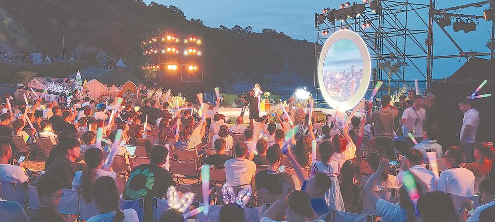 華燈初上,乘坐游輪參加閩江夜游,是許多福州市民、游客鐘愛(ài)的消暑納涼方式之一。郭斌 攝 “海島音樂(lè)+”暢享夏日清涼 無(wú)論走過(guò)多少名山大川,熱烈的夏天總是要留給海邊的。 來(lái)福建,飛歌海上天湖,暢享夏日清涼。12日傍晚,伴著斑斕晚霞與橘色海面,山海與音樂(lè)交響合唱,一場(chǎng)屬于夏天的“山海有歌聲·海島音樂(lè)會(huì)”在福鼎崳山島景區(qū)唱響。 “清泉煮新茶透過(guò)了丹霞/流過(guò)齒頰/滄海曉月鼓浪披秋紗激情年華/絲海的風(fēng)兒甜甜的……”一曲《福建如你》中,中央廣播電視總臺(tái)主持人朱迅,歌手周蕙、黃齡、金池、林啟得、俞更寅與清華大學(xué)鄉(xiāng)村振興工作站福鼎站站長(zhǎng)周宏宇等眾多嘉賓齊聚,以極具福建風(fēng)情的本土音樂(lè)開(kāi)篇,讓觀眾感受到撲面而來(lái)的煙火氣息。 “我們所在的這個(gè)地方叫月亮灣,現(xiàn)在這里已經(jīng)曬不到太陽(yáng),被這座山完全擋住了。”音樂(lè)會(huì)現(xiàn)場(chǎng)工作人員告訴記者,“剛剛實(shí)測(cè)了一下氣溫,不到24℃,比我們?cè)谑覂?nèi)開(kāi)空調(diào)的設(shè)定溫度還低。”