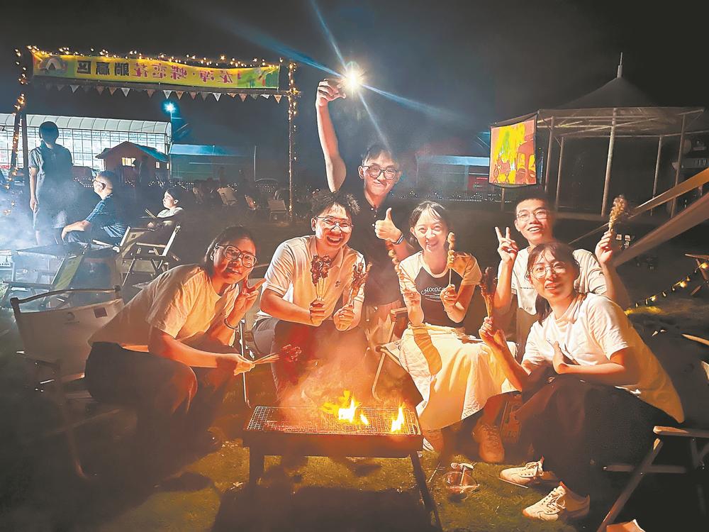 龍巖市永定區在蝴蝶蘭產業園中打造“蝶戀花”露營地,并于8月投入運營。圖為游客在其中露營聯歡。黃秋萍 盧燁 攝