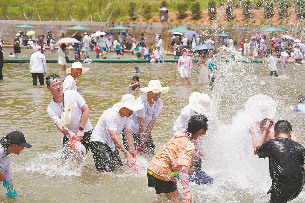 今年暑期,有“天然空調城”美譽的周寧縣成為避暑好去處。圖為7月,游客在當地的親涼谷水中嬉戲。福建日報記者 林輝 通訊員 劉志瑋 攝