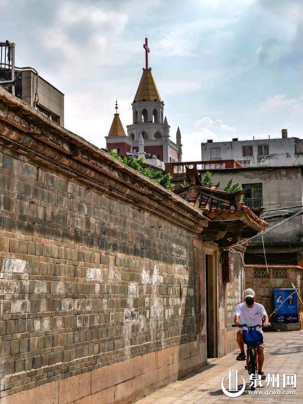 古榕巷嵌入墻面的觀音像 古榕巷“奇妙”之處:消失的古榕樹、嵌在墻上的觀音像、古城最小的石敢當。60號院內(nèi)有世遺點南外宗正司遺址;36號龔宅自發(fā)保護附近被遺棄的觀音雕像,將其嵌入墻面;22號有古城最小石敢當,造型生動有趣。這些都是古城人家可愛的小細節(jié)。 舊館驛巷算是一條低調(diào)的寶藏小巷,藏著眾多文物史跡。2號的董楊大宗祠是全國僅有的董、楊聯(lián)宗史跡;4號是泉州最后一位登科狀元吳魯?shù)淖x書處,鄰居有一副意味深長的書法對聯(lián):人生得一知己足矣,斯世當以同懷視之。巷內(nèi)還有楊濱海進士第、王海文故居等等。 鬧中取靜感受煙火氣 線路:金魚巷—花巷—許厝埕 金魚巷:271米長的金魚巷有不少值得停留的風景:建筑、展覽、古早味、咖啡館,新舊業(yè)態(tài)在這里共融。安靜有序,有咖啡香、煙火氣,也有旺盛的人氣。沒人能拒絕這條鬧中取靜的寶藏小巷。 花巷:泉州最“浪漫”的巷子,以花之名,美得剛剛好。傅宅曾是花巷最高建筑,修繕后也常辦些展覽。門楣上“版筑傳芳”的傅氏堂號傾訴著來處。游客來到泉州,流連于小巷時,可認真找找每家每戶特有的郡望堂號。 許厝埕:工藝美術(shù)廠經(jīng)常舉辦各類文旅活動,粉紅天主教堂也在旁邊。教堂對面,還有一處極富傳統(tǒng)文化內(nèi)涵的敬字亭可以看看。 來看看“踮腳”怕淹的房子 線路:奎霞巷—承天巷—敷仁巷 奎霞巷:在這里你可以看到踮著腳的房子。泉州古城水系發(fā)達,曾經(jīng)一條舢板船就可以順著城內(nèi)水路,抵達各條街巷。街巷與水相鄰,“踮腳”怕淹的房子,就這么來的。