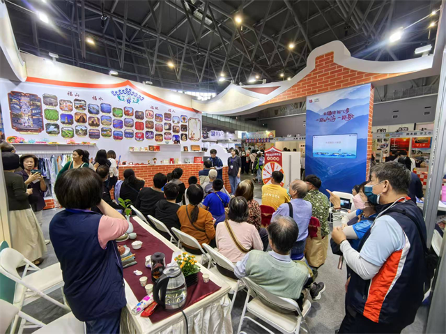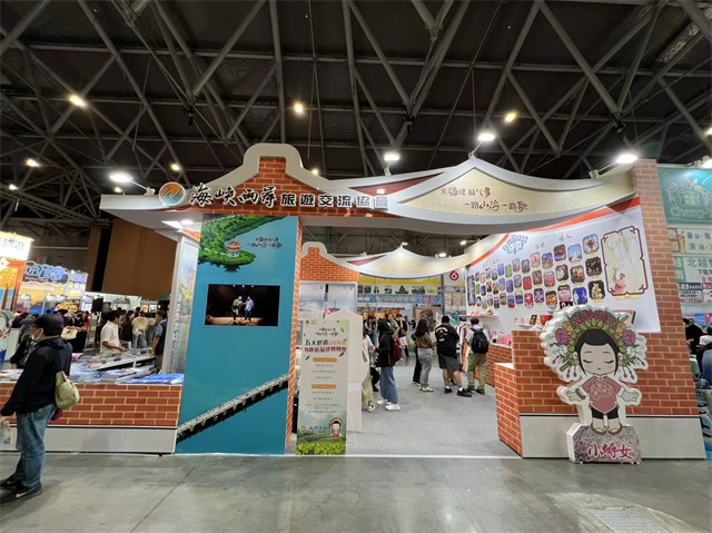 本次旅展整體設計以閩南古厝的紅磚、山花、燕尾脊為主元素,配以時尚的小小蟳埔女打卡區、漢服簪花體驗區,還特別設置漳州木版年畫拓印“福”字、福建茉莉花茶和武夷巖茶品茗以及“趣游福建轉轉樂”大抽獎等豐富多樣的互動體驗項目,文創品陳列與圖片展區巧妙融合,設計風格復古典雅、福建鄉情味十足。展區內精選46幅圖片,展出鼓浪嶼、武夷山、福建土樓等福建5大世界遺產的特色風貌,涵蓋福建的山水、人文、古厝、民俗、非遺和美食等,幀幀出彩的文旅圖片以及“周末戲相逢”和福建文旅脫口秀等品牌活動的圖文視頻展播呈現閩式生活的精彩與活力,吸引眾多臺灣觀眾游客駐足回味。