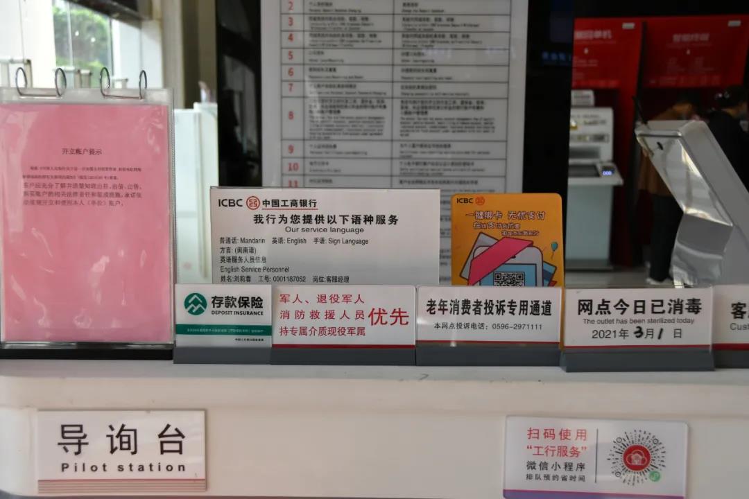 工商銀行漳州分行網點導詢臺設置退役軍人優先標示牌 |