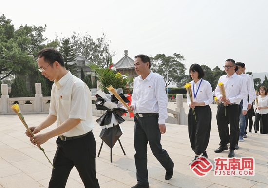 全體黨員干部職工向烈士紀念碑獻花。東南網記者 林婕 攝