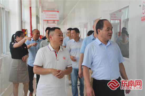 在福建盼盼食品有限公司晉江五里廠區(qū)內(nèi),省退役軍人事務(wù)廳調(diào)研組正在了解情況。東南網(wǎng)記者 陳詩婷 攝