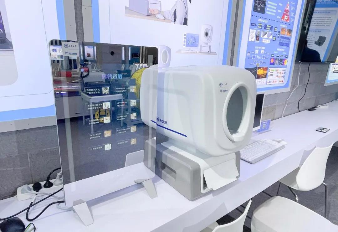 天津大學展區內的給水管道內檢測機器人吸引了眾人的眼球。作為管道的“體檢醫生”,該設備通過內檢測的手段,可以實現帶水壓下評估各類管道異常,微小的漏水點都能一網打盡。 它最大的特點是可以帶壓檢測,不影響用戶的供水,能夠發現管道內壁的一些沉降脫落或者說是管道內部的微小泄露。這個是我們的CCTV攝像的傳感功能,第二節是我們那個水聽器的傳感元部件,第三節是我們的地面信標的定位器,那這控制臺上可以清晰地看到我們在檢管道內部的視頻狀態,還有可以聽到監測到內部泄漏的一些音頻信號,協助自來水公司去精準定位它的泄漏點。 來自天津大學精儀精測團隊的黃啟漢介紹:“我們的水下帶纜機器人有攝像頭,可以觀察到管道內部的異常情況,內置有水聽傳感器,可以聽到管道內部微小的泄漏;還有一個是可以清楚觀察閥門狀況、管壁破損、腐蝕、雜質淤積等。與傳統的檢測方法不同的是采用內檢測方式,清晰度準確度更高。”據了解,水下帶纜機器人配置高,可一次在地下前行檢測2公里,相當于“醫生”給管道做“腸鏡”,再通過地面輔助的信標系統實現精準定位,解決常規檢漏效率低的難題。 智能中醫診斷裝備