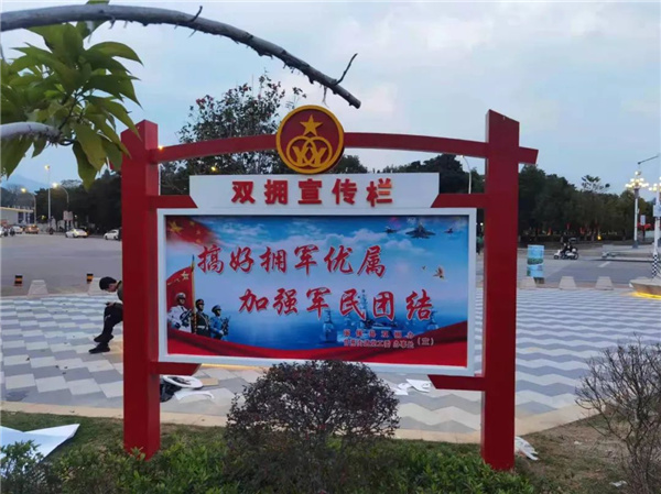 公園在原有主題植物品種、主入口廣場(chǎng)形象展示與多功能大草坪的基礎(chǔ)上,因地制宜融入雙擁主題文化元素,建設(shè)了“雙擁步道”“宣傳欄”等板塊,通過(guò)雙擁題材的雕塑小品、愛(ài)國(guó)擁軍宣傳牌等設(shè)施展現(xiàn)閩侯縣雙擁工作。