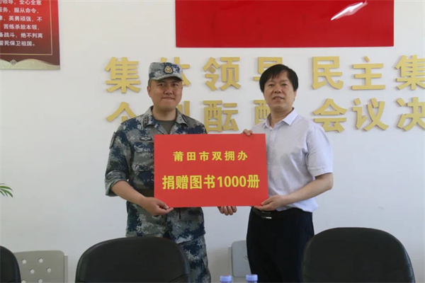 △向部隊贈送圖書,助力“書香軍營”建設。 “這幾年,隨著城市人口大量集聚,城市公辦優質幼兒園學位緊缺,軍人的學前子女入園成為軍人的煩心事。”黃松林說,莆田市雙擁辦急軍人之所急,充分發揮軍地橋梁紐帶作用,多方呼吁協調,積極落實《軍人地位和權益保障法》,建立長效機制,保障軍人學齡前子女100%入讀公辦優質幼兒園,并全部落實寄午,極大緩解了軍人家庭一天多次接送的困難;義務教育階段,依照就近就便原則100%安排到優質的中小學就讀;非義務教育階段,中考加分后未達優質普高錄取線的,給予優待安排市區普通高中就學。 “在優質教育資源稀缺的情況下,加大力度給予軍人子女照顧優待。”黃松林介紹,2018年以來,共有789名軍人子女享受教育優待政策,讓軍人不為“后代”憂心。同樣,在解決隨軍未就業及隨調家屬工作問題上,黃松林說:“市本級每年拿出6個全額撥款事業崗位、每個縣(區)根據駐軍規模每年拿出一定數量全額撥款事業崗位定向招考轄區隨軍未就業家屬,同時聘請培訓機構為參加定向招考的隨軍未就業家屬進行考前培訓;積極鼓勵隨軍家屬參加學歷教育和勞動技能培訓,相關費用由財政承擔。2018年以來,共有24名隨軍隨調家屬按照身份不變、專業對口的原則全部安置到位,市縣區共定向招考安置47名隨軍未就業家屬進入事業單位工作,讓軍人不為'后院'分心。”