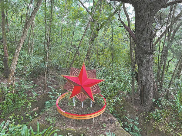 東山縣雙擁主題公園叢林中火苗一般簇紅的五角星 東山縣雙擁主題公園又名虎山公園,是1953年東山島保衛戰的一處陣地舊址。70年前的7月16日,東山保衛戰打響,經過36小時激戰,取得最終勝利。 “這里見證了當年東山島軍民同心協力戰斗的紅色歷史。”東山縣退役軍人事務局干部朱勝東介紹說。2021年,東山縣以保護開發革命舊址為契機,對公園進行改造提升,讓其煥發新生機。 站在東山縣雙擁主題公園最高點,中心城區廣廈高樓盡收眼底,足見其地理位置之重要。 在公園地面上,清晰呈現描述東山島保衛戰驚心動魄戰斗的文字;在步道中間,以銘刻主題句的形式把戰斗過程的時間節點、黨的領導、軍事指揮、支前雙擁運動以及勝利果實一一展示……“我們在公園建設中通過多種方式普及雙擁知識、宣傳國防教育,使廣大市民在休閑娛樂中與歷史對話、與英雄交流。”東山縣退役軍人事務局局長許世齊說。 在展館里,記載著東山保衛戰支前模范一等功臣方雪華的故事。今年88歲的方奶奶身體依然硬朗,高興地回憶起自己16歲時幫助藏護解放軍戰士的故事。