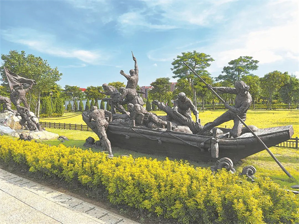 月港雙擁公園以立雕形式展現龍海船工渡海作戰的風采。 作為福建省革命老區縣,龍海區具有擁軍優屬、擁政愛民的光榮傳統。2020年,該區投資6700萬元對革命烈士陵園進行提升改造,建成月港雙擁公園。在園里,革命歷史陳列館、革命歷史紀念墻、支前船工雕塑的落成,進一步營造尊崇英烈的濃厚氛圍。 當前,各地雙擁公園建成開放后,因其獨特的紅色底蘊吸引了不少市民駐足參觀,也成為人們接受國防教育、弘揚紅色文化的熱門“打卡地”。 如何科學地管理運營,更好地擴大影響力,充分發揮、提升其教育效能?有關人士認為,要以強化雙擁公園運營為牽引,著力盤活軍地各方資源優勢,創新運用網絡和現代傳媒載體,科學統籌、多維發展、系統建設,公園主管方要主動作為,定期開展學生愛國主義教育、干部黨性教育、市民國防教育、退役軍人活動、工會文化活動、社會企業團建,以及部隊新兵入列儀式等線上線下活動,多形式將雙擁公園打造成一個黨史軍史融合教育學習活動陣地,通過看展覽、聽故事、做體驗等形式,讓紅色文化和紅色精神融入現代社會和群眾生活中。 |
