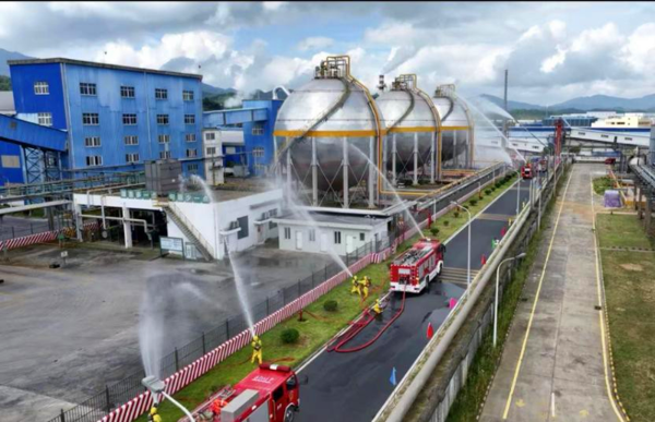 9月14日,由福建省應急管理廳、龍巖市人民政府聯合主辦的2023年福建省危險化學品生產安全事故綜合應急演練在龍巖市上杭縣甕福紫金化工股份有限公司舉行,龍巖市人民政府副市長簡洪坤擔任演練總指揮。福建省應急管理廳副廳長黃德學現場觀摩并講話。 此次演練模擬甕福紫金化工股份有限公司一液氨罐在常規檢修過程中因法蘭老化突發泄漏事故,導致現場多名檢修人員被困。公司接到報告后,立即啟動企業應急預案,調配人員進行現場先期處置,并上報上杭縣人民政府和相關部門;上杭縣政府第一時間組織相關部門和救援力量趕赴事故地點,成立現場救援指揮部,開展救援工作并上報險情。龍巖市政府根據險情報告研判,認為危險化學品泄漏可能對園區周邊企業及鄉鎮造成嚴重危害,提升事故響應等級為《龍巖市生產安全事故應急預案》Ⅲ級響應,并請求省應急廳增援。省應急廳調派福建省?;瘧本仍菔?、福建省?;瘧本仍摵鲜爟芍I?;犖?,趕赴現場開展堵漏作業,經過約一個小時的緊張搶修,完成了堵漏作業。 演練現場共設置綜合協調組、專家技術組、事故救援組、安全保衛組、醫療救護組、善后處理組、宣傳組和環境監測組等8個小組,模擬了事故信息報送、預案啟動、噴水消釋、化學品泄漏圍堵、緊急關閥、人員搜救、治療受困昏迷人員、后期清消及環境監測等多個實戰環節,完整展示了液氨泄漏應急處置全過程。 演練按照政企預案銜接和協調聯動的要求,有效檢驗了企業先期處置能力,各級各部門、各專業救援隊伍的應急保障能力,尤其是鍛煉了省級危險化學品應急救援隊伍的跨區域作戰能力,進一步強化了政企應急預案的可操作性和實用性,提升了企業和部門應急救援能力。
