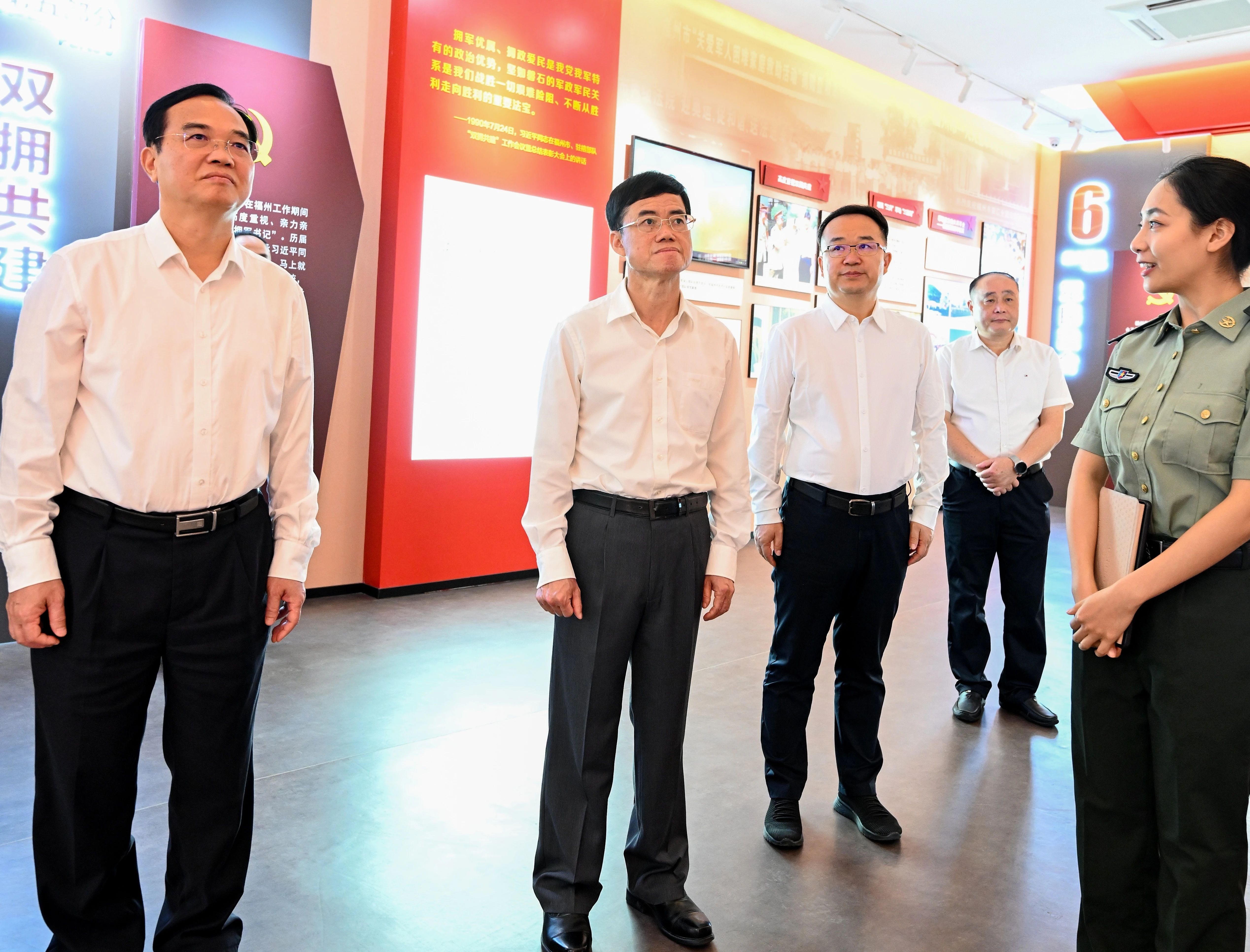 在駐連江某部隊,裴金佳深入了解部隊光榮歷史,親切慰問基層官兵。在福州警備區黨管武裝(雙擁)展覽館,裴金佳在一幅幅展板前駐足,深入了解習近平總書記在榕工作期間抓黨管武裝、雙擁工作的重大理念和重大實踐。他強調,各級各有關部門要傳承弘揚雙擁光榮傳統,全力服務駐地部隊,為部隊遂行各項任務提供堅實保障。