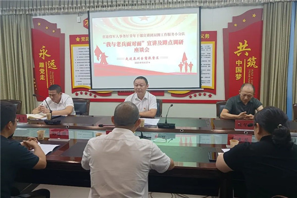 開展雙擁工作座談 最后,調(diào)研組一行在洛陽鎮(zhèn)人民政府會(huì)議室互動(dòng)交流并聽取我區(qū)雙擁工作相關(guān)情況匯報(bào)。一是雙擁亮點(diǎn)特色突出。“我與老兵面對(duì)面”宣講實(shí)踐活動(dòng)、“軍人退役一件事”兩項(xiàng)工作任務(wù)被省、市納入縣(市、區(qū))級(jí)試點(diǎn)宣傳推廣。二是擁軍支前持續(xù)加強(qiáng)。開展“軍民情”共建活動(dòng),深化“雙擁在基層”活動(dòng),加大隨軍家屬就業(yè)扶持力度。三是保障體系不斷完善。組織召開區(qū)、鎮(zhèn)退役軍人事務(wù)工作會(huì)議,在各級(jí)退役軍人服務(wù)中心(站)設(shè)置窗口,設(shè)立巡回辦案點(diǎn)。四是政策落實(shí)持續(xù)推進(jìn)。落實(shí)撫恤優(yōu)待政策,扎實(shí)推進(jìn)優(yōu)待證申領(lǐng)發(fā)放工作,安置工作圓滿完成。五是雙擁活動(dòng)持續(xù)深化。擁軍組織不斷擴(kuò)大,擁軍平臺(tái)不斷規(guī)范,積極探索“雙擁+志愿服務(wù)”。
