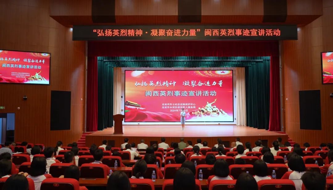 為進一步加強青少年的愛國主義教育,引導青少年更好地傳承紅色基因、賡續紅色血脈。7月24日,由龍巖市烈士紀念設施保護中心、永定區退役軍人事務局聯合主辦的“弘揚英烈精神·凝聚奮進力量”閩西英烈事跡宣講活動在永定一中科技藝術館舉行,永定區委常委、人武部部長林建文,永定區人武部、永定區退役軍人事務局全體干部職工,各鄉鎮(街道)退役軍人服務站站長,部隊官兵、退役軍人代表及永定區第一中學學生300多人參加了此次宣講活動。