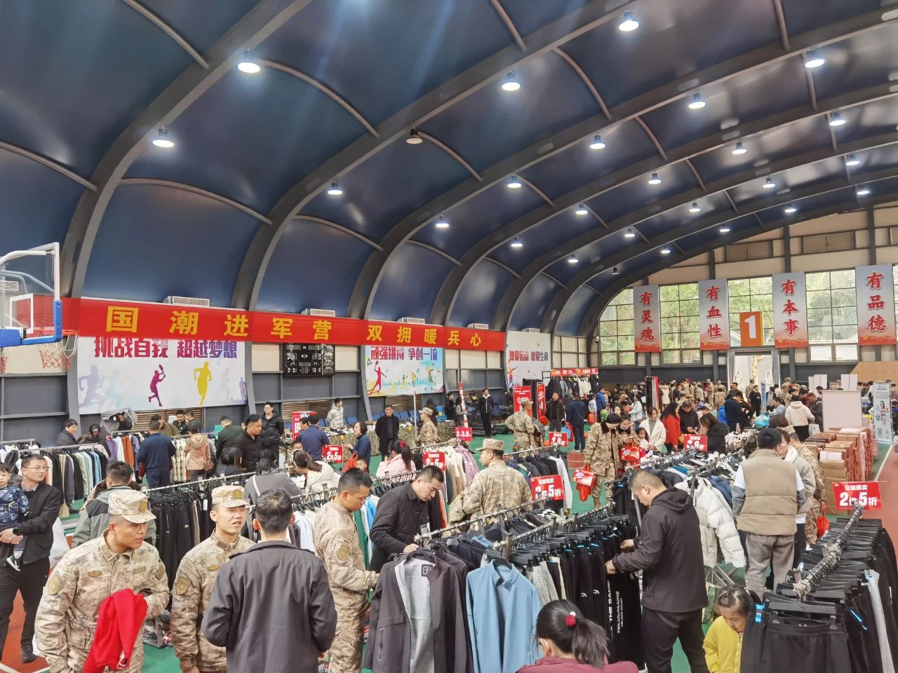 活動以“企業進軍營、惠及子弟兵”為主題,立足于“推介閩貨、質優價廉、服務官兵、促進消費”,安踏、361度、七匹狼、沃特、盼盼等擁軍企業,共拿出百余款鞋服、健身、年貨產品等供軍人軍屬選購。省軍區領導,省退役軍人事務廳(省雙擁辦)、商務廳、文旅廳等單位負責人專程來到活動現場,與官兵一起感受濃濃的擁軍惠軍氛圍。 此次活動,吸引了省軍區及周邊友鄰單位近千余名軍人軍屬參加。 |