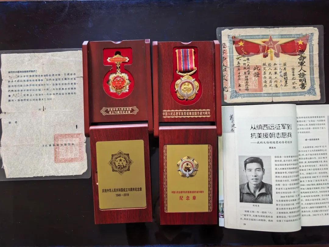 “父親一輩子不愛說話,可那些證上的紅章,比任何語言都有分量。”胡天文記得,第一次幫父親整理舊物時,指尖撫過“中國遠征軍”“第四野戰軍”“抗美援朝”等字樣,才驚覺這位不識字的父親,竟把大半個世紀的家國記憶,都鎖進了沉默里。