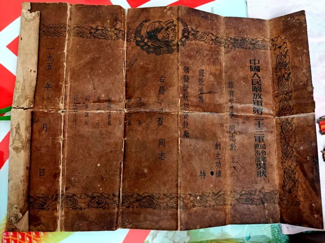 拿到沖鋒號,蔡傳習有些恍惚,仿佛聽到了那穿越時空的軍號聲。 1922年6月出生的蔡傳習是家中的老大。“我們家是種田的,那時候生活苦啊。”蔡傳習回憶,1941年,19歲的他被“抽中”參軍,參加了抗日戰爭,“當時是在國民黨的一支部隊里,擔任司號兵,也就是吹號的。” 那個年代,主要的通訊方式就是司號。號分很多種,戰斗時有沖鋒號、前進號、撤退號,平時有起床號、出操號、收操號。司號員的主要任務就是將每個號音傳遞的信息,及時準確地告訴全體官兵。 “沖鋒號一響,只有前進沒有后退!”蔡傳習說,每當沖鋒時,號兵總是第一時間吹響軍號,及時傳遞指揮部的命令,也能鼓舞士氣,但也因此會成為敵人重點狙擊對象。即便如此,他也從沒想過退縮。 “抗日戰爭勝利后,1946年我加入新四軍,參加了解放戰爭,并在1948年加入了中國共產黨。”蔡傳習摸著臉上的傷疤說,“1948年打棗莊時我受了傷,子彈從右臉打進,左臉穿出,舌頭短了一截,說話說不清了,也吹不了沖鋒號。” 幾個月后,傷愈歸隊的蔡傳習放下沖鋒號,拿起長槍,繼續活躍在戰場上,先后參加了渡江戰役和抗美援朝戰爭。 1951年,作戰英勇的蔡傳習被授予“三等功”。這份已經發黃泛黑的紙質獎狀和各種戰役紀念章,他至今珍藏著。