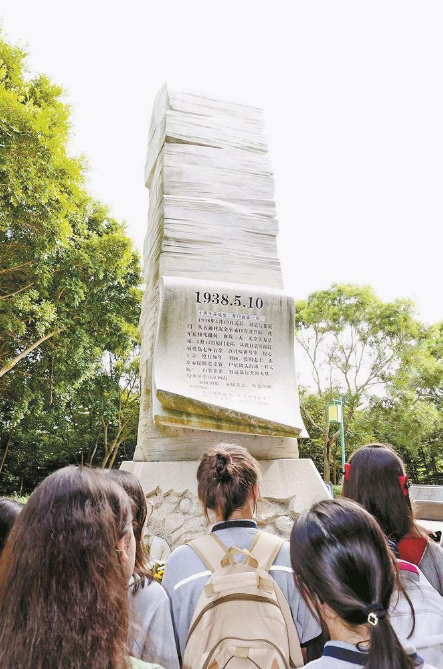 日前,廈門市中學生參觀“永銘在心”廈門抗日死難者紀念雕塑及廈門抗戰時期死難者名錄碑。(唐光峰 攝)