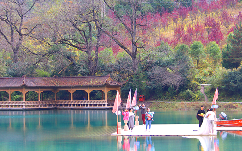 游客在美麗的文縣天池拍照游玩。文縣深入推進“文旅強縣”,把綠水青山變成了美麗經濟,近兩年來接待游客248萬人次,實現旅游綜合收入達12億元。