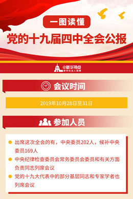 為貫徹落實黨的十九大精神,十九屆中央委員會第四次全體會議著重研究了堅持和完善中國特色社會主義制度、推進國家治理體系和治理能力現代化的若干重大問題,作出如下決定。?